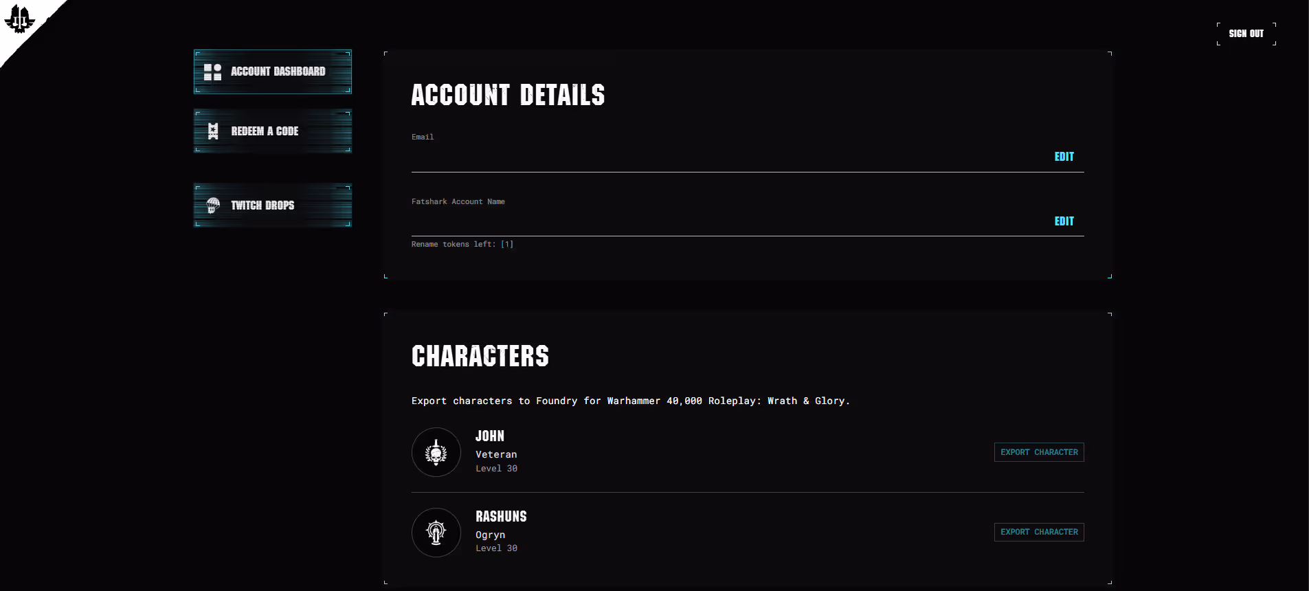 How to export your Darktide character: