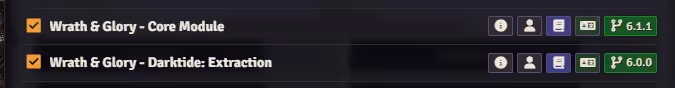 - Open your Foundry Virtual Tabletop, make sure you've installed the necessary modules (Wrath & Glory - Core Rulebook and Darktide: Extraction) and activate them in the settings tab under Manage Modules