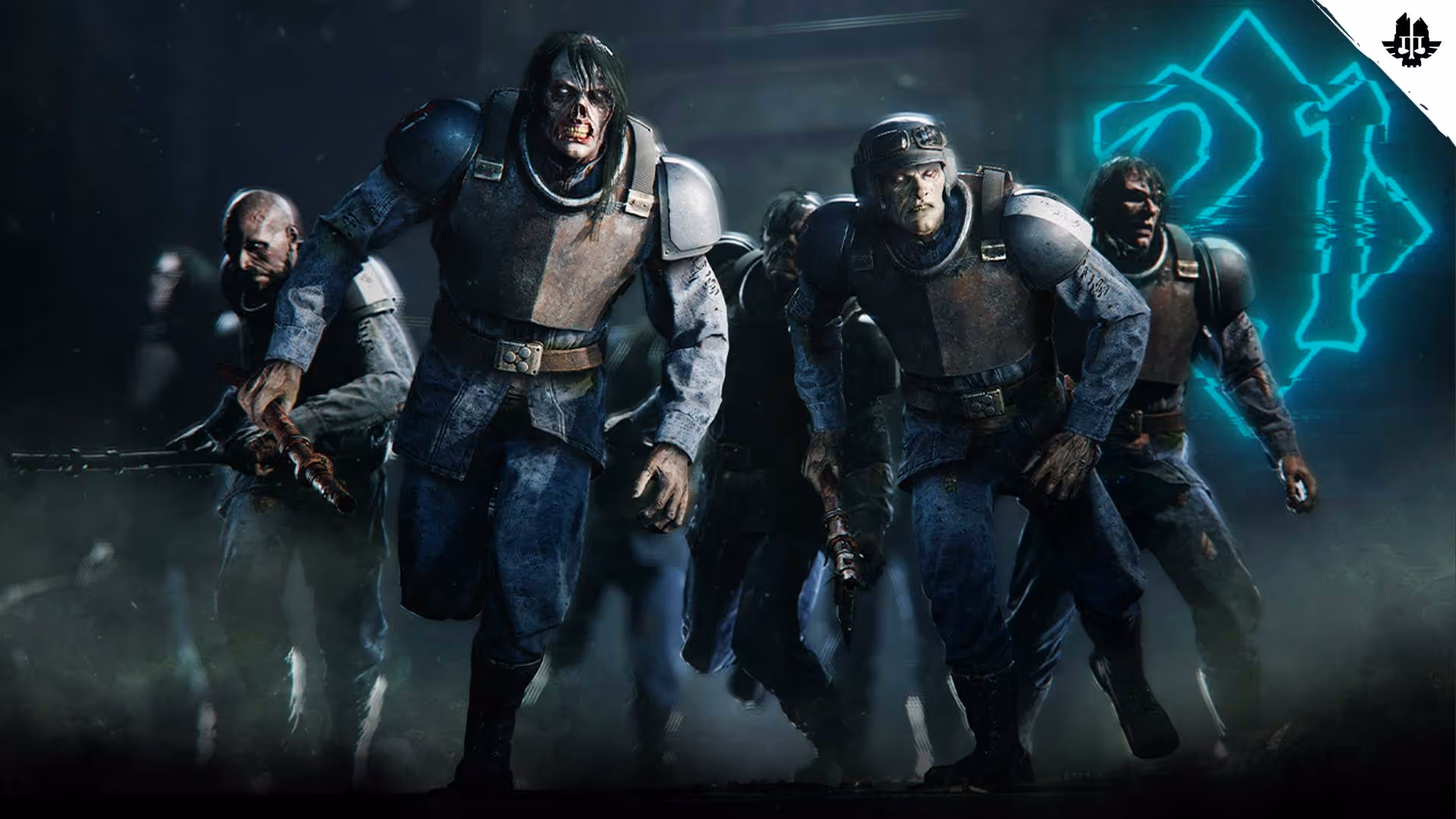They come from the shadows slowly at first, their limbs stiffened by death, but whatever malign force is animating them grows in strength and speed with every step. Their faces are slack and expressionless, their mouths stretched wide in rictus-grins, but these groaners are different to the usual scum. Stained and tattered remains of pale blue uniforms hang from their rotting forms, battered flack armour dangling from mouldering straps – but the same mindless hunger burns in their sunken eyes.
